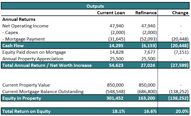 ✅ Minimum required ROI on withdrawn equity to make refinancing worthwhile
